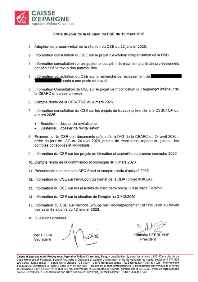 Odre du jour du CSE du 19/03/2026