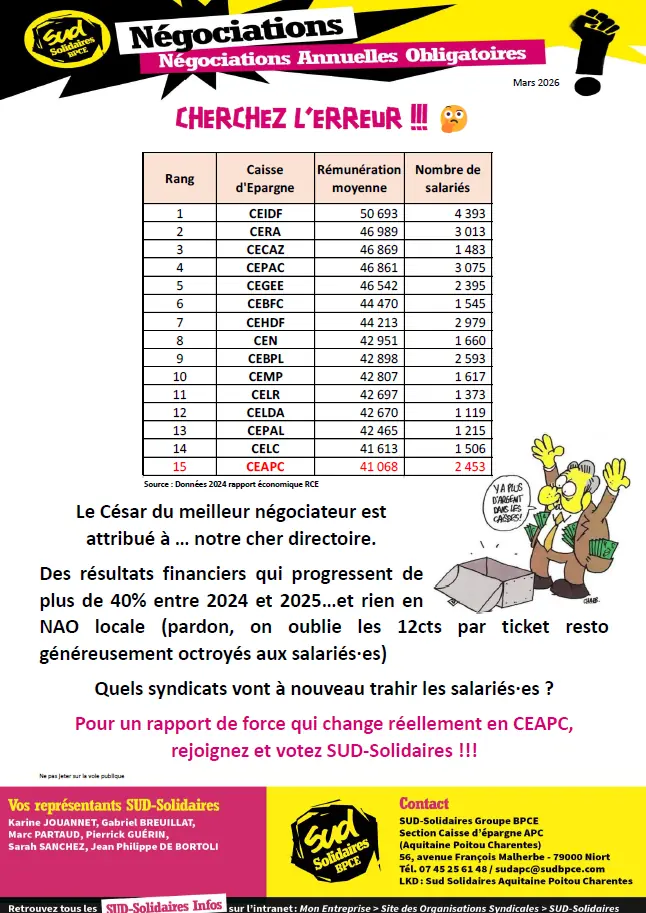 LES DIRIGEANT.ES DES CAISSES D’ÉPARGNE DONNENT LES MILLIONS À NAMIAS… PAS AUX SALARIÉ.ES ! - 11/2025 National
