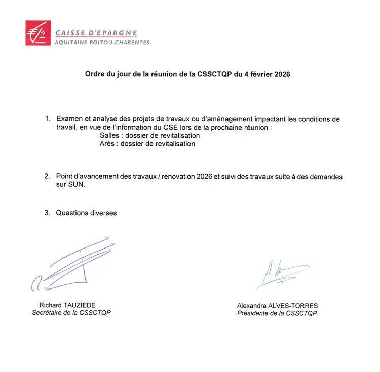 Ordre du jour CSSCT du 04/02/2026