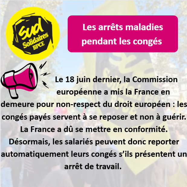 La France a dû se mettre en conformité. Désormais, les salariés peuvent donc reporter automatiquement leurs congés s’ils présentent un arrêt de travail.